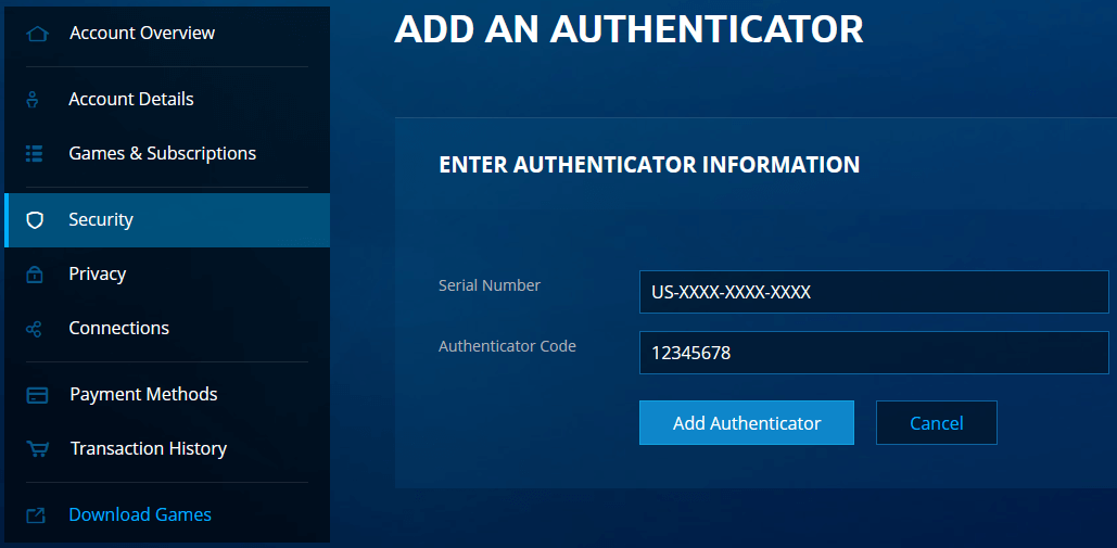 - Sign in to your Blizzard account and go to Account > Security.